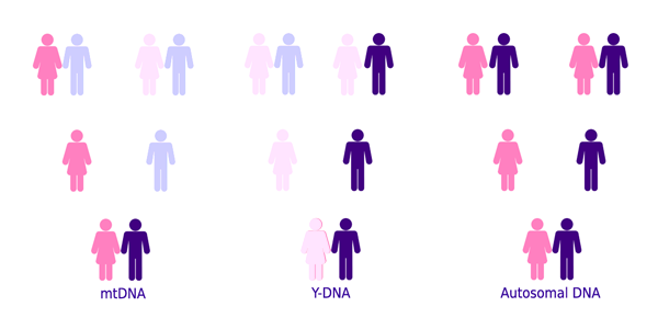 Postoje tri vrste genetičkih testova: autosomalni, mitohondrijski (mtDNA ili mDNK) i Y-DNA (Y-DNK). Autosomalni test će vam otkriti genske veze s ljudima u svijetu i s majčine i s očeve strane, dok će mDNK-test reći vašu mitohondrijsku DNK-haplogrupu koju ste naslijedili od majke, bake itd, te veze s drugim ljudima s majčine strane. Y-DNK (Y-DNA) test je samo za muškarce, jer žene nemaju Y-kromosom, a otkrit će Y-haplogrupu i veze s drugim ljudima s muške strane. Y-haplogrupa nasljeđuje se od oca, djeda, pradjeda itd, a prenosi samo preko sinova.